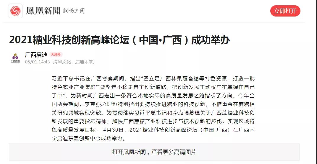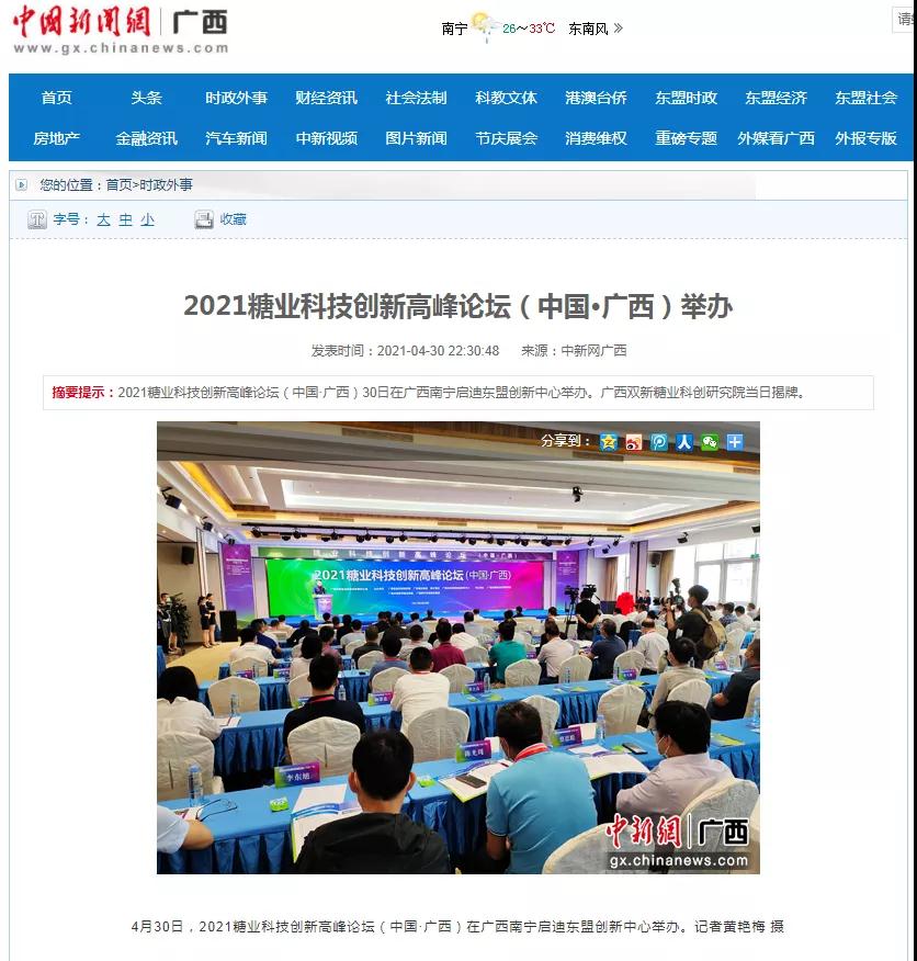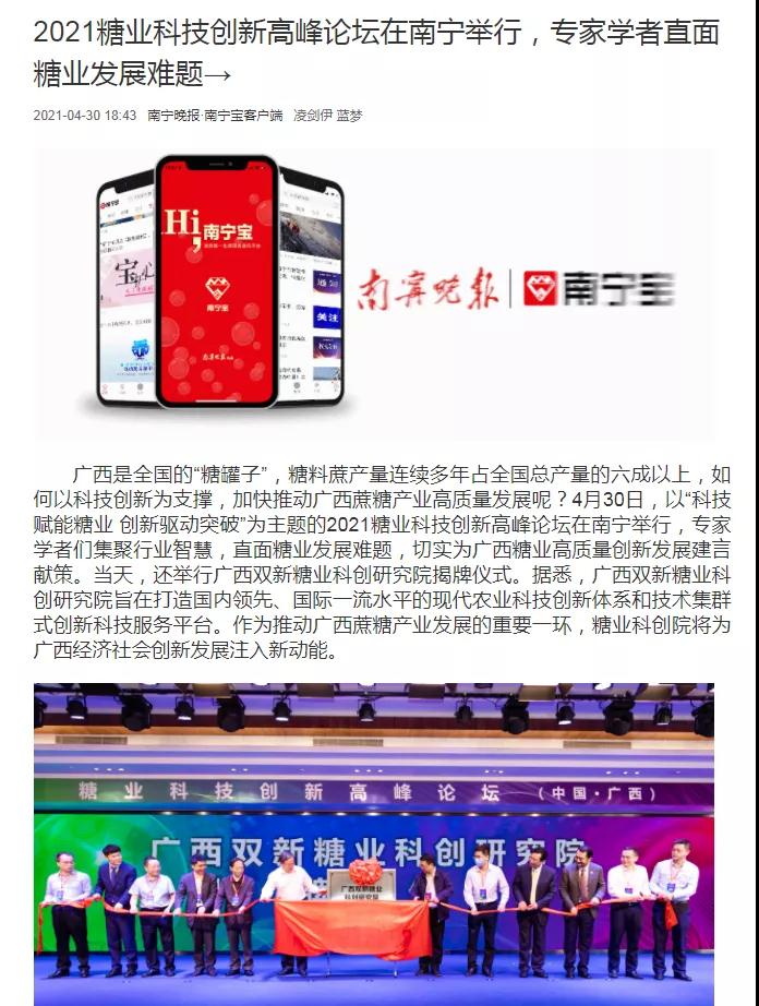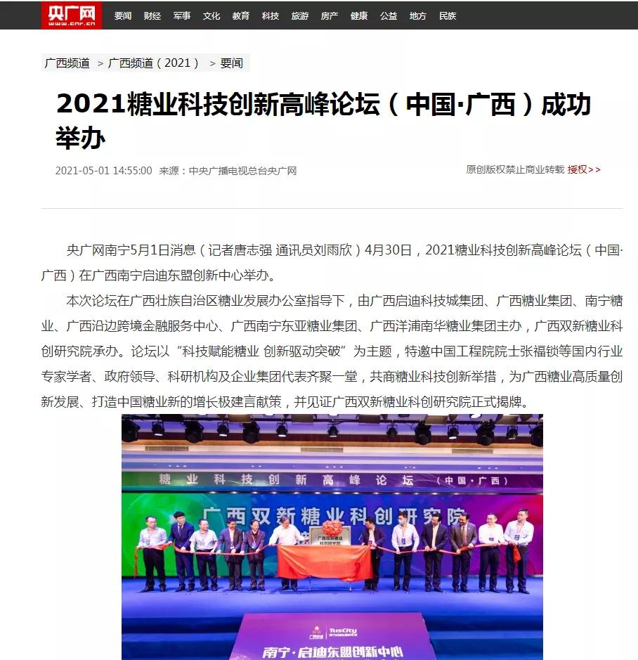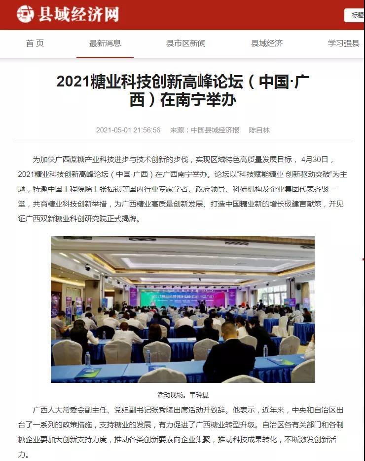 媒體聚焦 | 20多家媒體報(bào)道2021糖業(yè)科技創(chuàng)新高峰論壇(中國(guó)·廣西)盛況