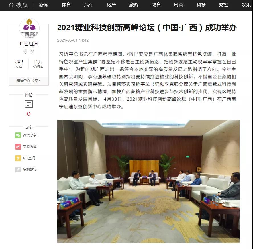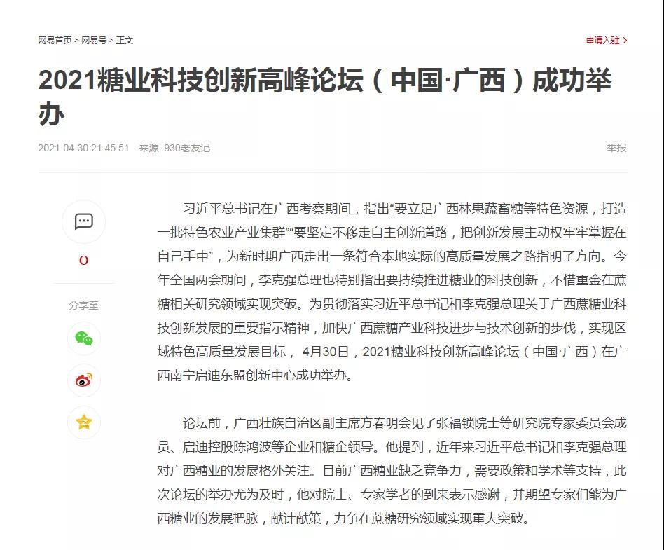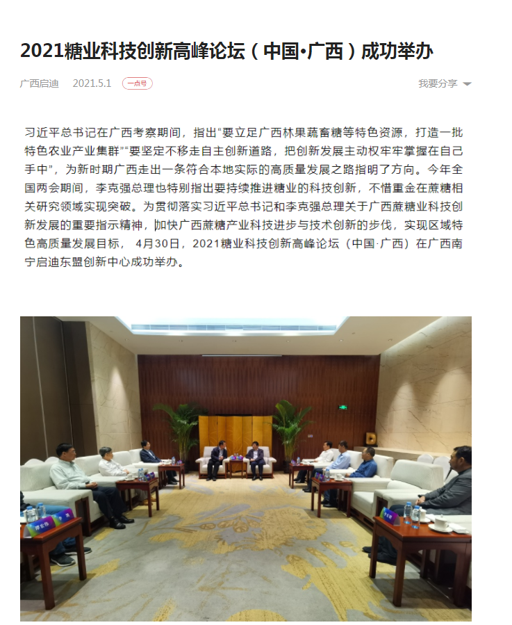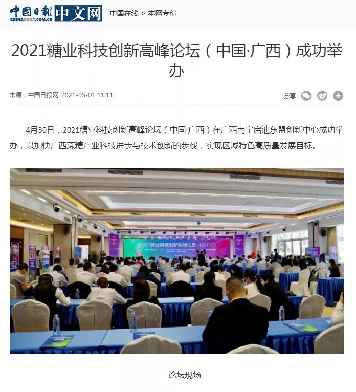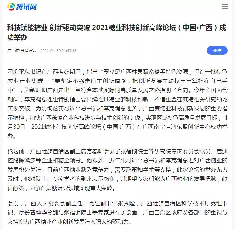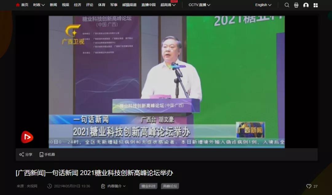 媒體聚焦 | 20多家媒體報(bào)道2021糖業(yè)科技創(chuàng)新高峰論壇(中國(guó)·廣西)盛況