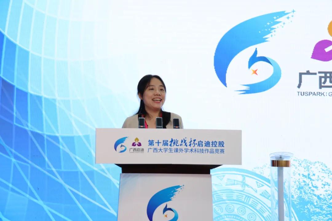 廣西中醫(yī)藥大學(xué)黨委書(shū)記尤劍鵬和參賽學(xué)生代表邱芊芊分別作了發(fā)言。最后,左向蕾副書(shū)記宣布第十屆“挑戰(zhàn)杯”啟迪控股廣西大學(xué)生課外學(xué)術(shù)科技作品競(jìng)賽終審決賽正式開(kāi)幕。
