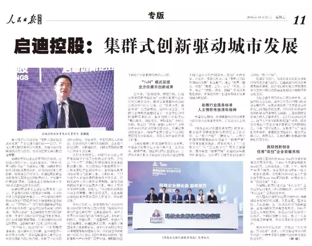 人民日報|啟迪控股:集群式創(chuàng)新驅(qū)動城市發(fā)展