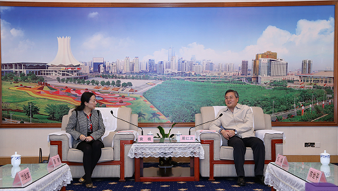 (圖為啟迪控股總裁袁桅與南寧市市長(zhǎng)周紅波會(huì)談)